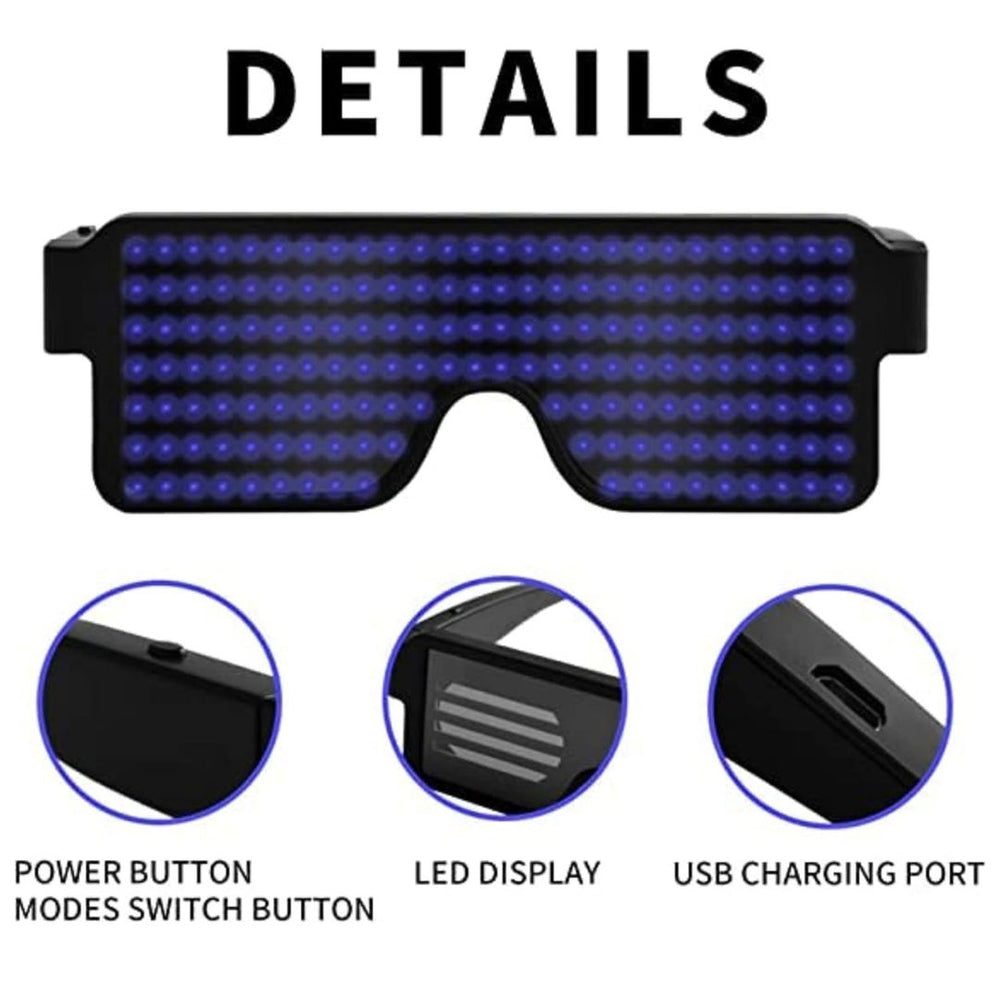 These dynamic, wireless LED glasses feature 164 vibrant lamp beads that create stunning visual effects, making you the star of any event. With 10 customizable patterns and a stylish retro square frame design, Blink-Glow lets you express your personality while adding a touch of brilliance to every party. Equipped with a long-lasting rechargeable battery, these glasses provide 6-8 hours of non-stop fun. Simply press a button to cycle through the dynamic patterns, no app required—just effortless style and entertainment.